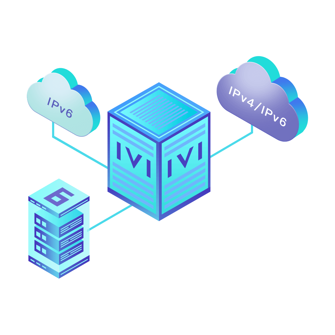 在IPv6演進的過程中,傳統(tǒng)的雙棧技術方案的實施代價很大,需要解決所有三層以上網絡設備,業(yè)務系統(tǒng)、用戶上網管理計費等系統(tǒng)的IPv6全面升級改造問題,而且會帶來巨大的安全風險。我們從安全性、性價比、平滑過渡特性、可擴展性等方面著手,基于IVI無狀態(tài)翻譯技術,為不同過渡階段的不同需求的用戶定制最合適的IPv6升級解決方案。